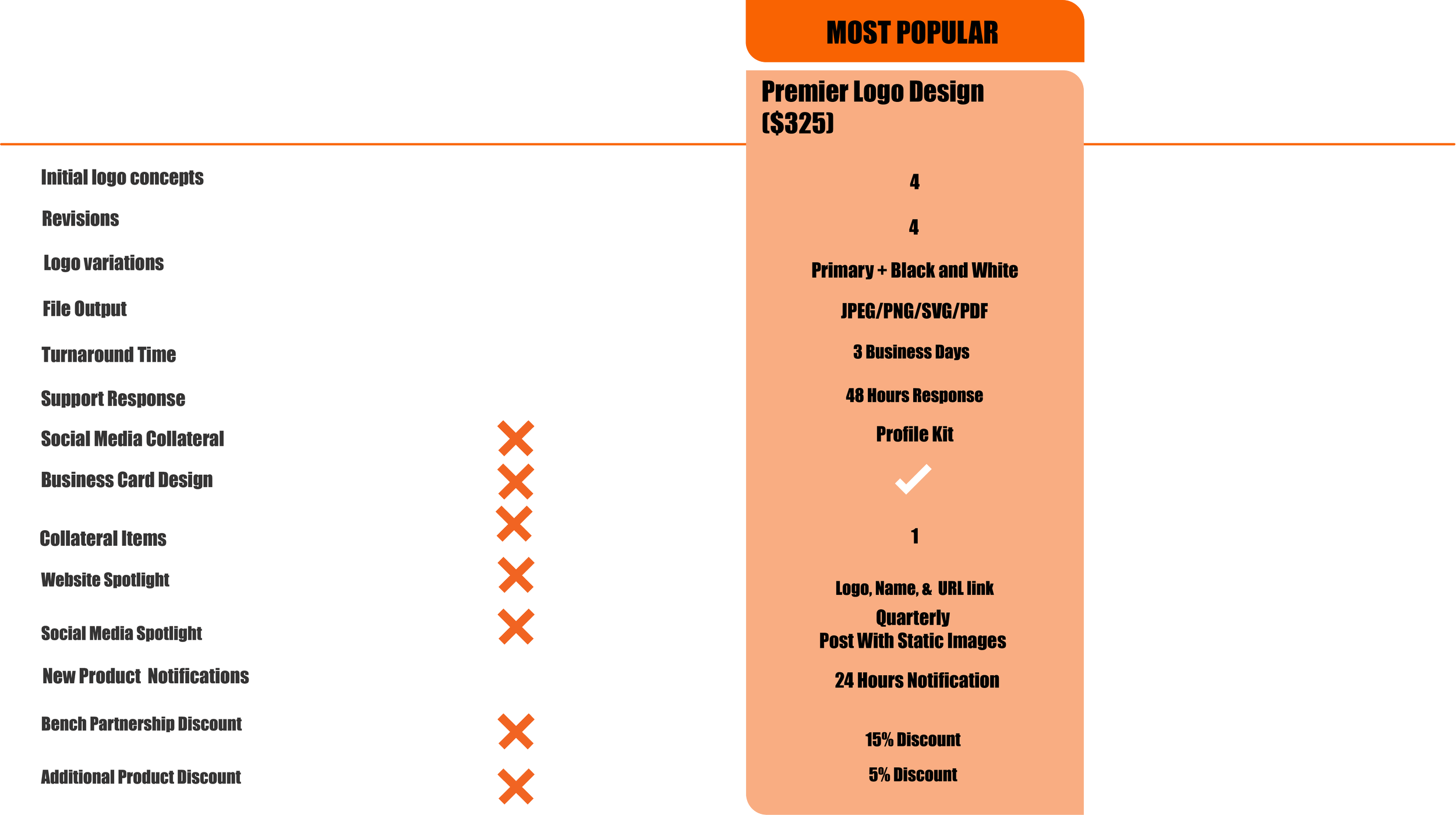 Click here for an accessibility pdf file of the Bench Product tiers